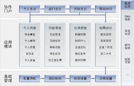 协作门户帮助企业员工实现高效协作,以流程核心为基础,提供个人主页、部门事务和系统主页等模块,同时满足企业员工个人、领导和部门内部的时时沟通的需要