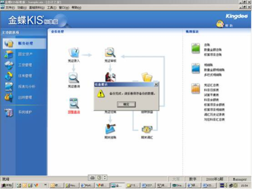 金蝶KIS具有很强的事故恢复能力。您在使用过程中遇到的断电等意外故障,可能会对账套文件造成破坏,以致无法打开账套,这时你使用“修复账套”功能将对遭到破坏的账套进行自动修复。